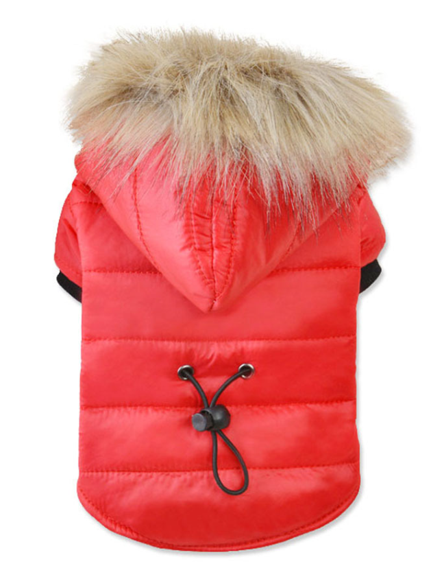 Prošívaná bundička s kapucí je velmi moderní a praktický doplněk pro Vašeho mazlíčka. Bundička se perfektně přizpůsobí tělu psa díky stahovací šňůrce na zádech.