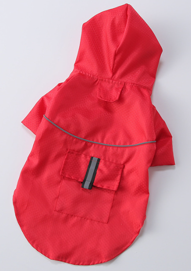 Pláštěnka pro psa s kapucí a vnitřním síťováním, vhodná pro malá plemena. Na zádech a kapuci je opatřena reflexními prvky pro lepší viditelnost a také otvorem na vodítko. Kapsičku na zádech lze využit na malé pamlsky.