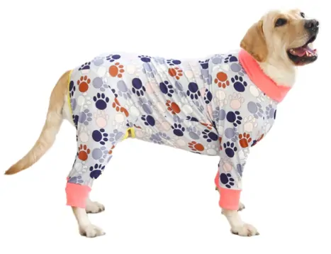 Bavlněné pyžamo pro střední a velké pejsky s motivem tlapek. Oblékání přes hlavu.