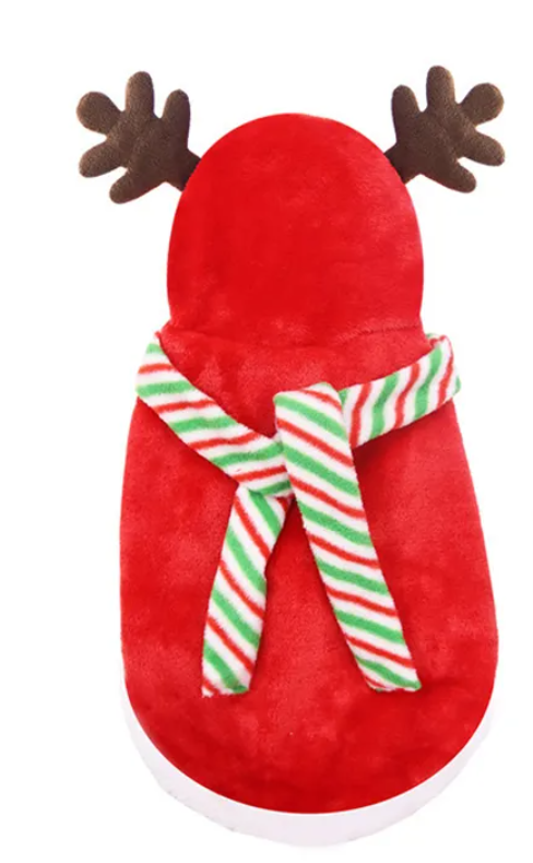 Nalaďte se na vánoční atmosféru i s Vašimi mazlíky. Stylová plyšová vesta s kapucí, kterou zdobí sobí parohy a šála. Zapínání s druky na břiše.